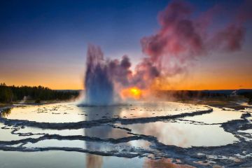 13. Tag : Ihr Aufenthalt im Yellowstone National ParkHauptanziehungspunkte des Parks sind die Geysire und heißen Quellen. Old Faithful ist wohl der bekannteste Geysir und dient als Aushängeschild des Parks. Touristische Anziehungspunkte sind weiter die großen Wasserfälle im Grand Canyon of the Yellowstone, ferner die vielen kleine Seen und der für die Höhenlage erstaunlich große Yellowstone Lake. Auch eine beeindruckende Tierwelt erwartet Sie. Unzählige Hirsche, Büffel und mit etwas Glück sehen Sie auch Bären, Wölfe, Koyoten und Elche.